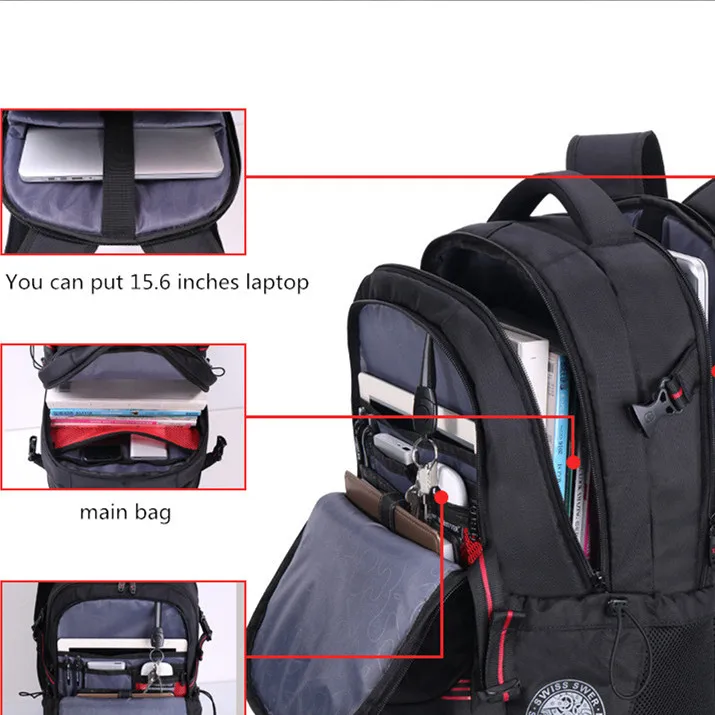 Купить Svvisssvver мужской Универсальный USB зарядка Модный Бизнес Повседневный туристический Противоугонный водостойкий 15,6 дюймов рюкзак для ноутбука Цена Дешево
